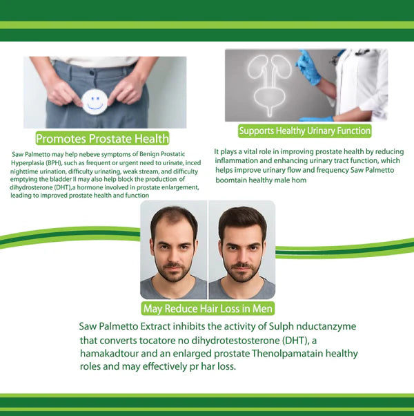 Saw palmetto extract (SPE) helps to improve urinary symptoms associated with benign prostate hyperplasia (BPH) — a condition that causes an enlargement of the prostate gland and results in decreased urine flow.